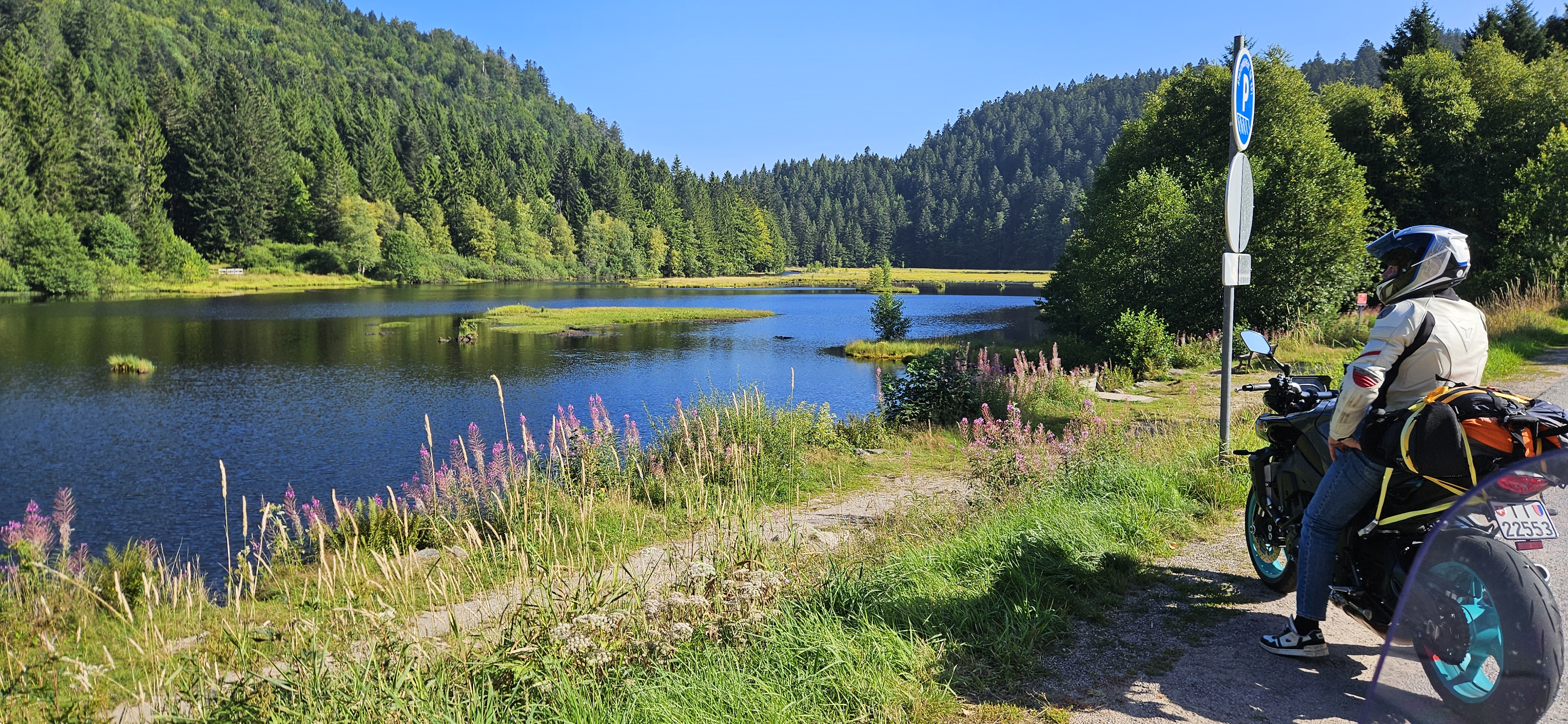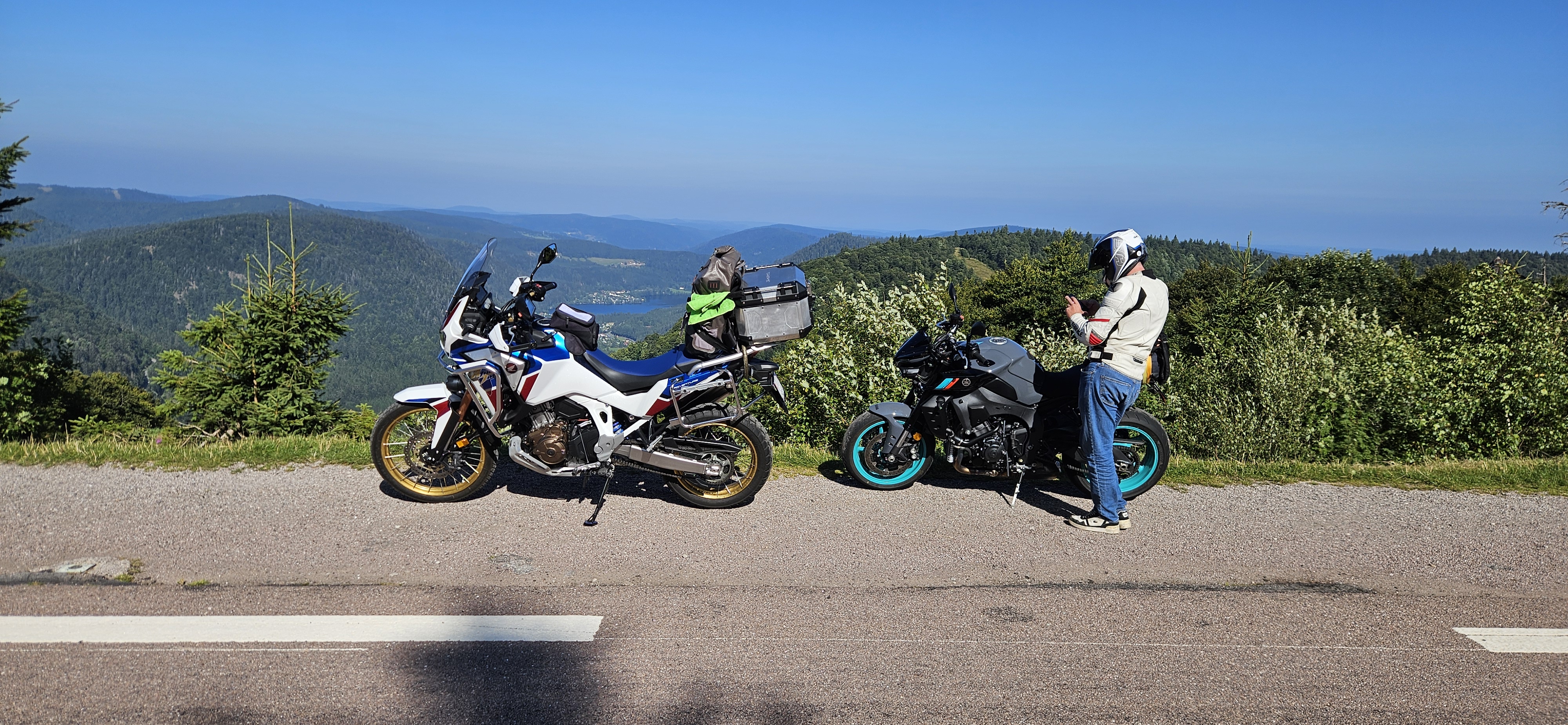Strade  di bella percorrenza motociclistica, davvero. Strada delle Vette di 73 Km, un passo dopo l’altro, altitudini basse, bella vista dal Grand Ballon, 1424 m s.l.m.